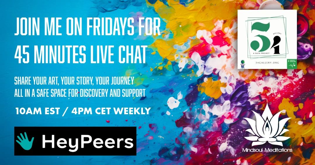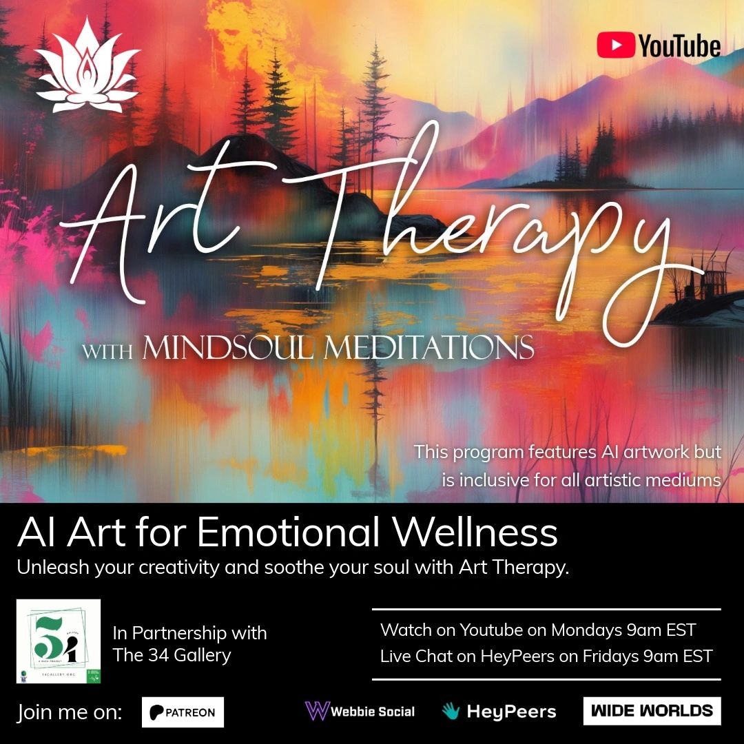 34 Gallery Art Advisor MindSoul Meditations will host live AI Art Therapy Groups on HeyPeers to provide virtual Peer support to assist your mental health journey.