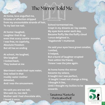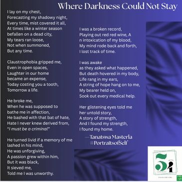 "My name is Tanatswa Masterla. I have written poems on Emotions, My Comfort and Dawn On Second Chances. I have chosen these poems because they offered solace to me in my most down times.